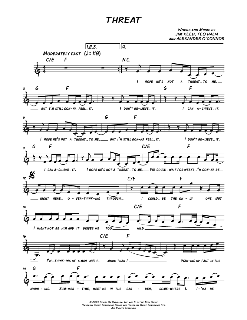 Leadsheets typically only contain the lyrics, chord symbols and melody line of a song and are rarely more than one page in length. Musicians will often use these skeletons to improvise their own arrangements. Leadsheets often do not contain complete lyrics to the song.