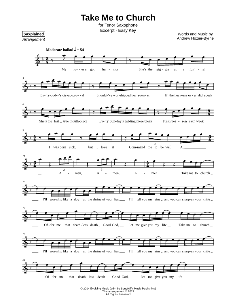Take Me to Church [excerpt - easy] |