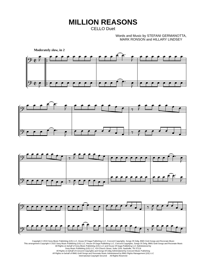Million Reasons - Cello Duet |