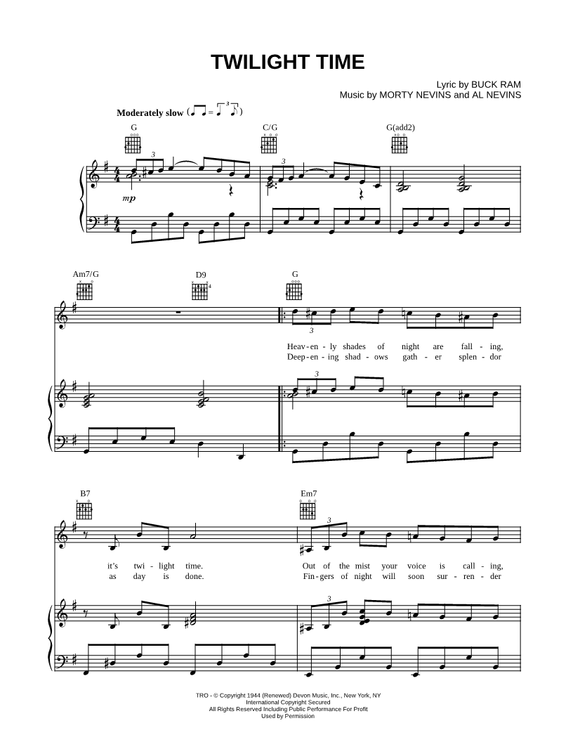 Heavenly shades of night are falling, it's twilight time. |