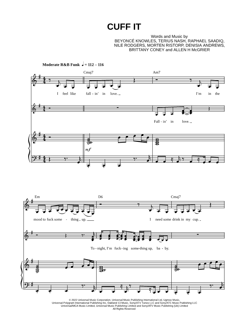 Voice, range: E3-E5 Piano Backup Vocals | |