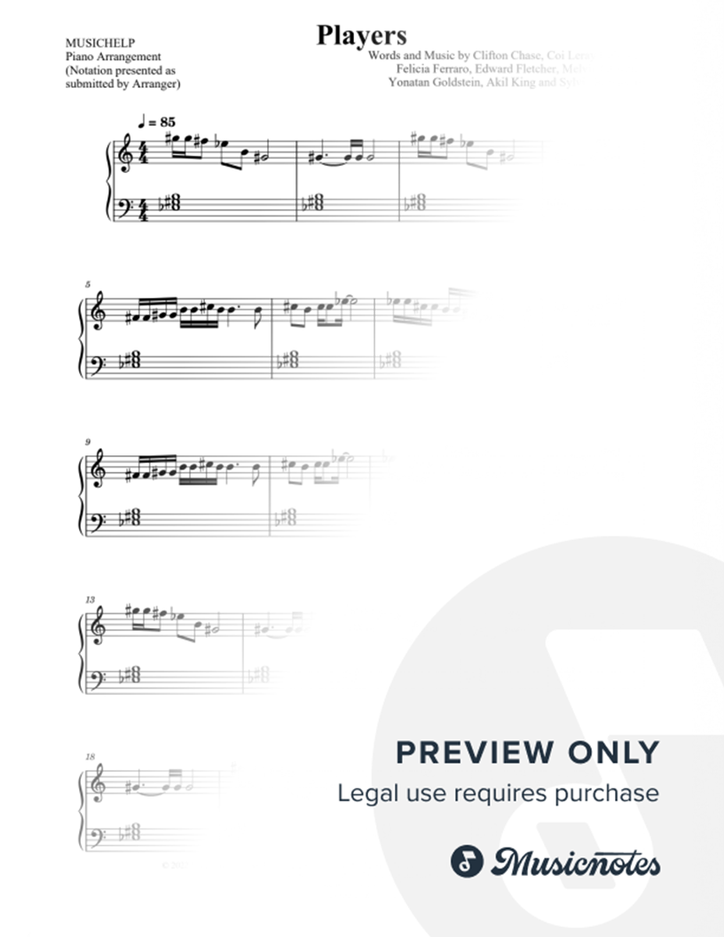 Many of the arrangements on Musicnotes have transpositions available, typically in C Major, as well as 3 sharps and 3 flats. If you do not see your desired key, you can request a transposition by reaching out to Customer Support.