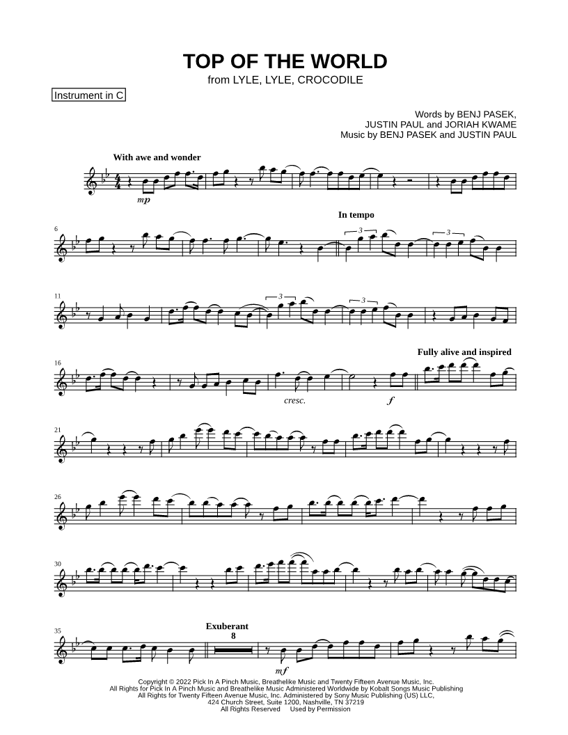 C Instrument, range: F4-G6 (Flute, Oboe, Violin or Recorder) | |