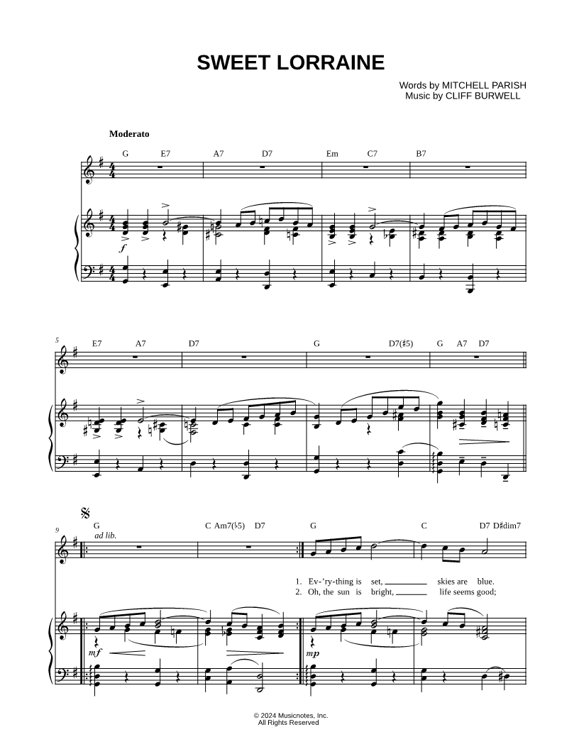 Musicnotes sells a wide variety of digital sheet music products including Singer Pros, Beginner Notes, Choral music, Piano Solos, Lead Sheets, Piano/Vocal/Guitar, Solo and Accompaniment, and fretted instrument tablature.