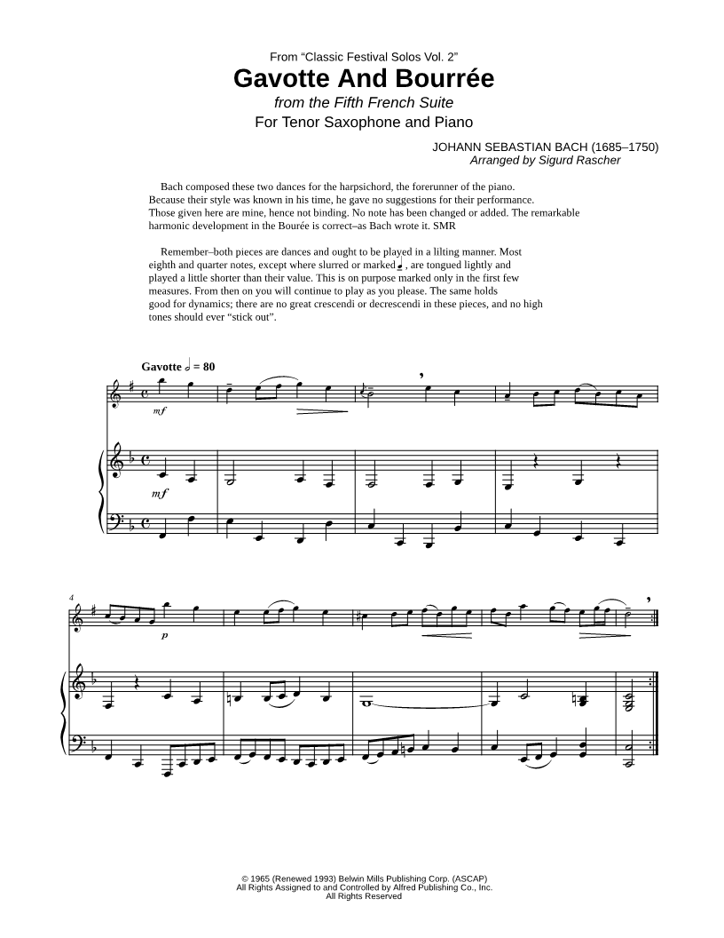 Gavotte and Bourrée - Tenor Saxophone & Piano |