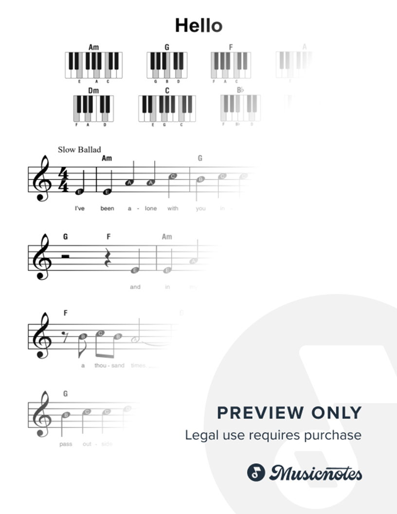 Musicnotes sells a wide variety of digital sheet music products including Singer Pros, Beginner Notes, Choral music, Piano Solos, Lead Sheets, Piano/Vocal/Guitar, Solo and Accompaniment, and fretted instrument tablature.