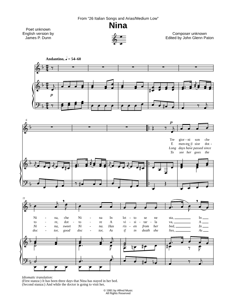 Voice, range: C4-E5 or Medium Low Voice Piano | |
