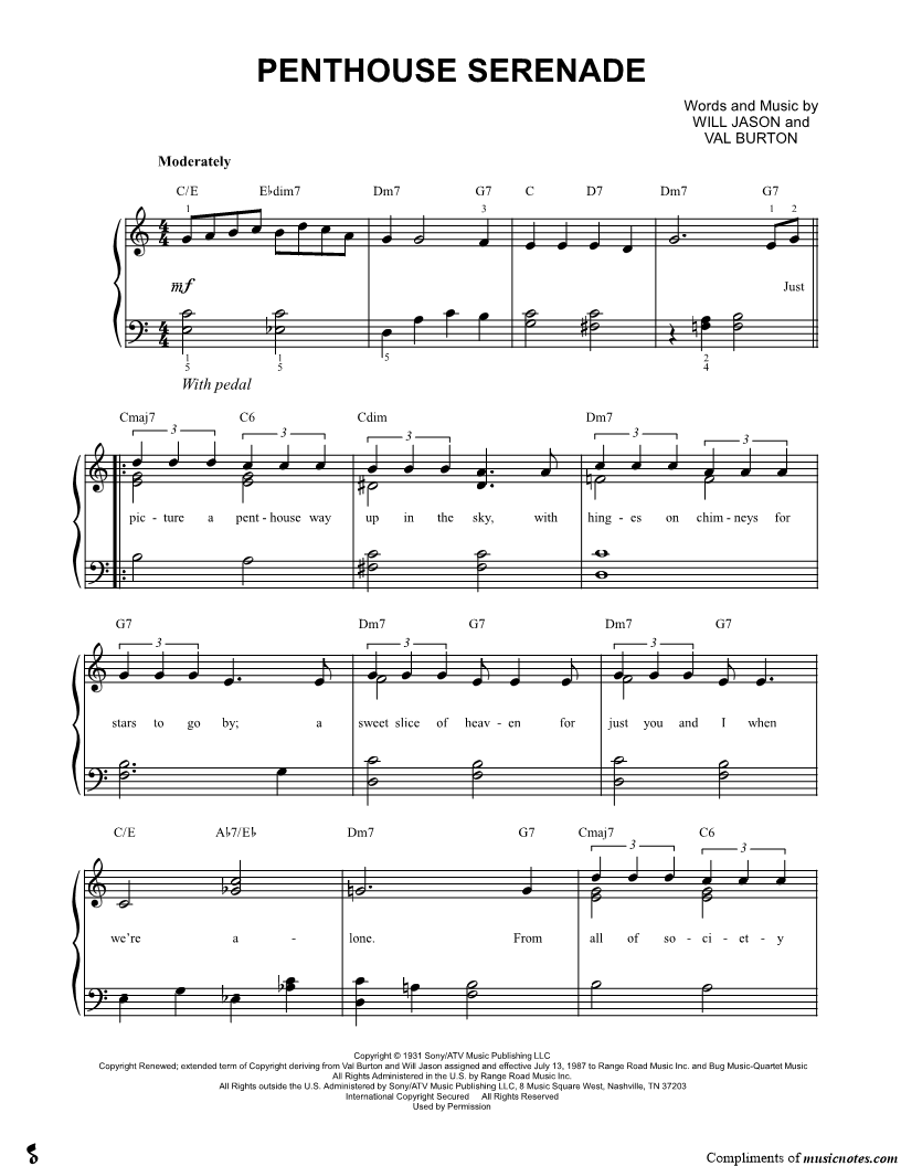 Just picture a penthouse way up in the sky, with hinges on chimneys for stars to go by; a sweet slice of heaven for just you and I when we're alone. |